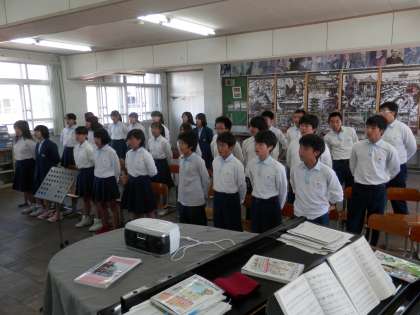 今日の取組の時間は、ずっと第1音楽室に居て、2年生の練習を善美観ました。