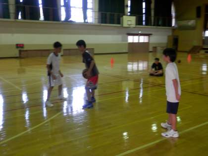 体育館では男子バスケットボール部が活動をしていました。