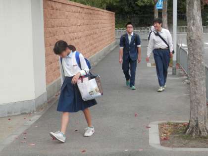 昨日、体育の時間に怪我をした男子生徒が松葉づえで登校しました。