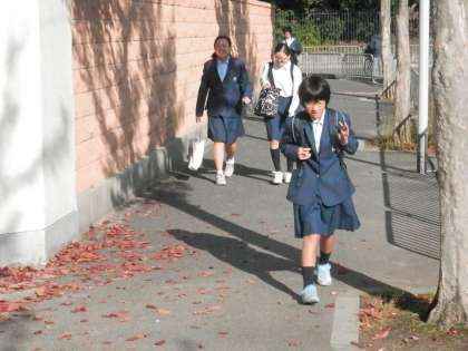 通勤時間帯は寒いくらいですが、校門に立つ時間になると丁度良い気温になります。