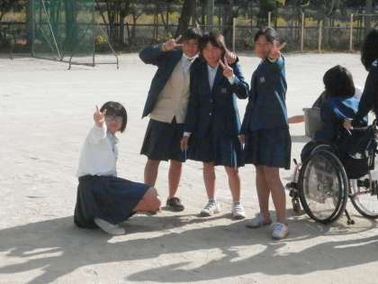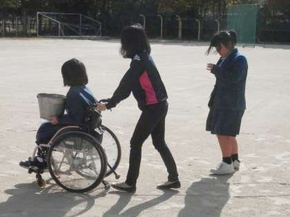 治療のため車いすを用いている生徒は、拾った石ころを集めて回ります。