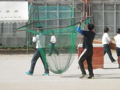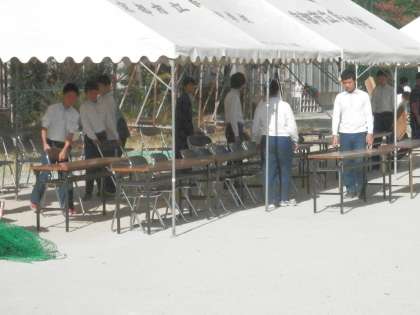 防球ネットを運ぶ人、本部席を作る人、役割は所属する委員会によって異なります。