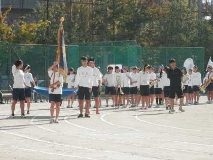 グランドに出ると、既に吹奏楽部がスタンバイしていました。