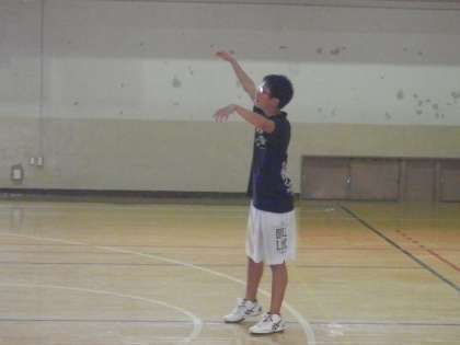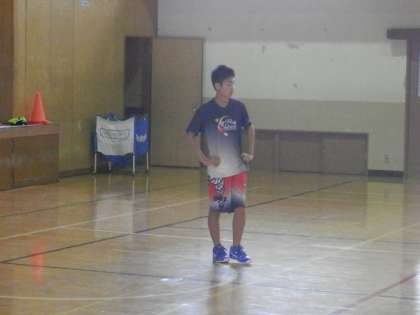 午前中の体育館では男子バスケットボール部と女子バレー部が練習をしていました。