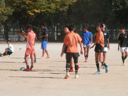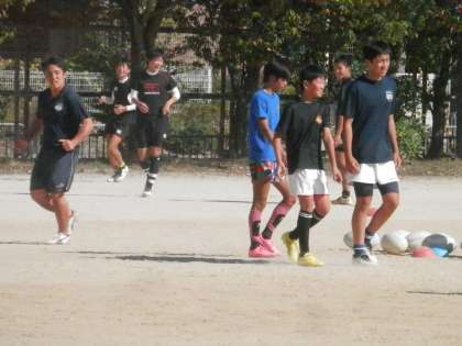 グランド東側ではラグビー部が練習開始です。