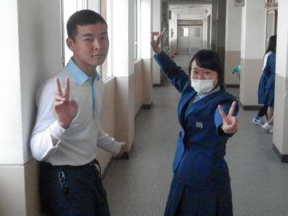 休憩時間になって、3年生の階へ行きました。