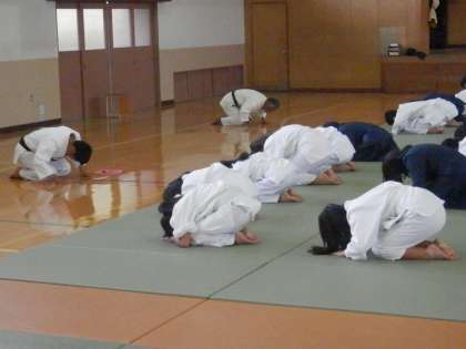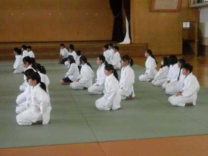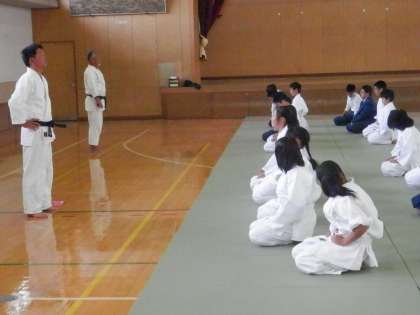 体育の柔道の様子です。3年生と比べると、まだ座り姿勢もできていません。