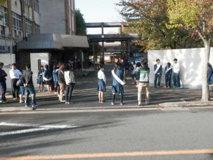 今日も、生徒会本部役員の立候補者とその応援をする人たちで、校門付近はごった返しました。