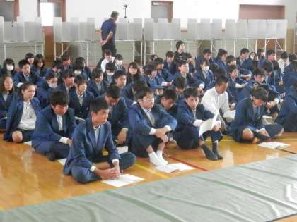 舞台上で演説する人の声が大きく態度もよいので、自然と聴衆の態度もよくなります。