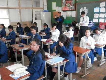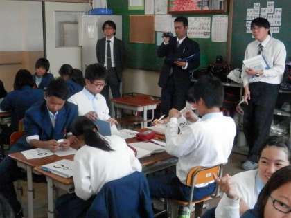 他の学校の先生や教育委員会の先生が見ておられる中での授業となりました。