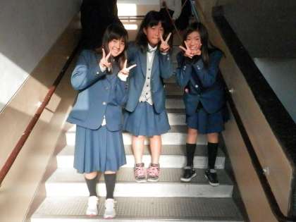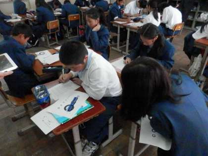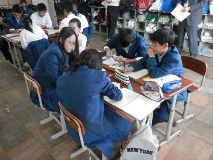 グループ活動の様子と、授業後の笑顔あふれる表情です。