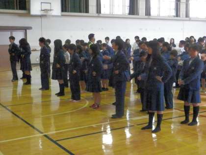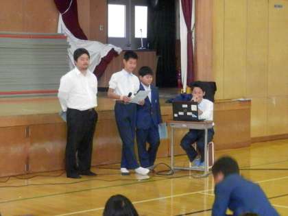 5時間目、明日の校外学習に向けて学年集会をもちました。