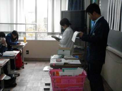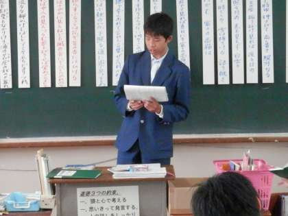 国語の時間には、万葉集の中から気に入った作品を選び、歌の意味と情景、感想などを発表するという内容の授業です。よい取組です。