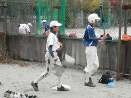 本来は合同てチームでの練習だったようですが、雨の影響で各学校で練習することになったようです。
