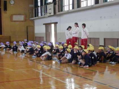 3年生が幼児さんと触れ合う体験学習です。プログラム順に観ていきます。