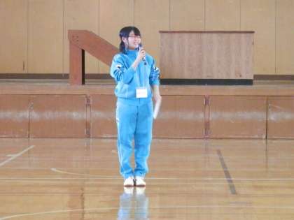 まずは、幼児さんの整列の様子(中学生よりしっかり並んでいます)、司会者のMC、最初の挨拶の様子です。