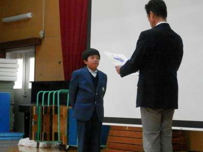 次は育成合同運動会でのリレーの優勝と、中学校総合文化祭社会科研究発表会での最優秀賞の表彰です。