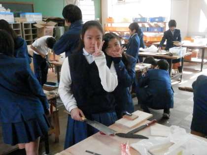 技術の時間と、休み時間に授業に向かう1年生女子です。