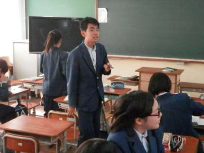 ベルが鳴りだす前に生活環境委員が着席を促しています。