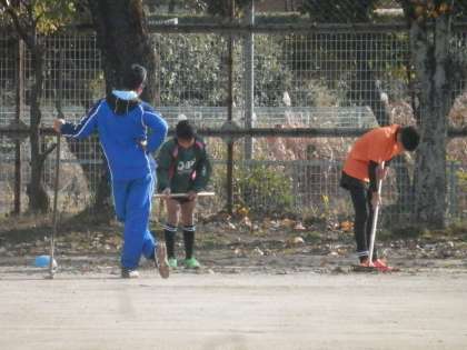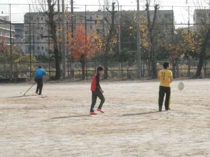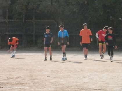 グランドではラグビー部が、寝屋川第三中学校を迎えて練習試合をするということで、一生懸命グランド整備を行っています。