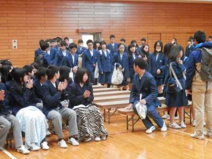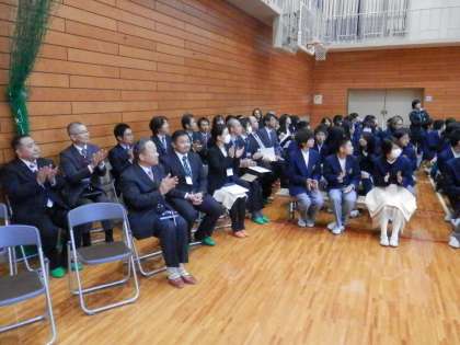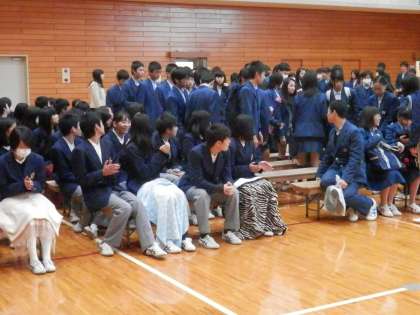 予定よりやや遅れて花山中の体育館に3年生が入場してきます。