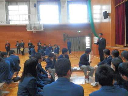 話し合い活動の時間は幾分短く感じましたが、楽しいひと時を過ごすことができました。最後に向島中学校長がお礼と締めの挨拶を行いました。