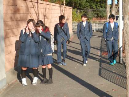 太陽に高さが低いので、直接太陽光が目には色のでしょう。カメラに向かって目を開けるのもしんどそうですね。