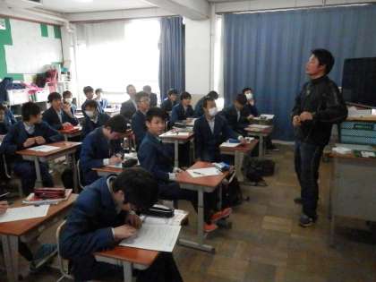 1・2組の男子が一同に会して保健の授業を行っていました。