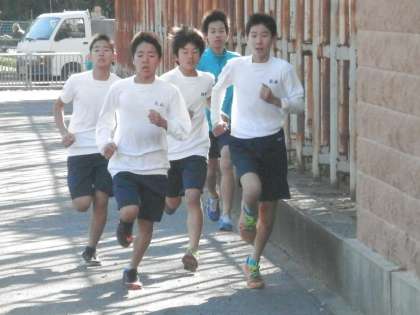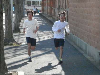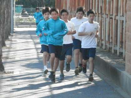 体育は現在持久走に入っています。男子は学校の外周を走ります。