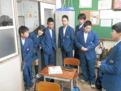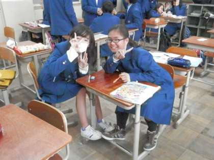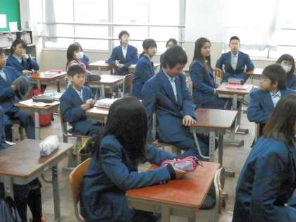 生徒は席に着いていますが、まだチャイムはなっていません。