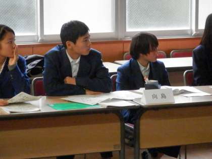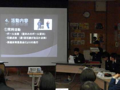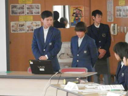 2時30分から藤森中学校で「伏見支部保健委員会交流会」が行われ、本校からは現保健体育委員長の中西君と前委員長の小原君の2人が参加してくれました。