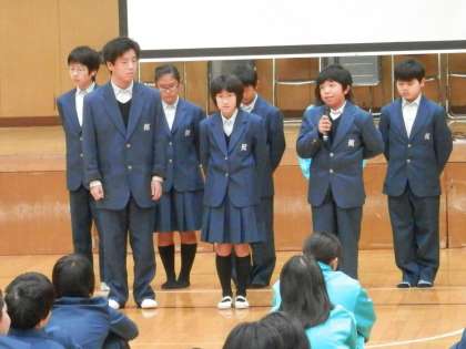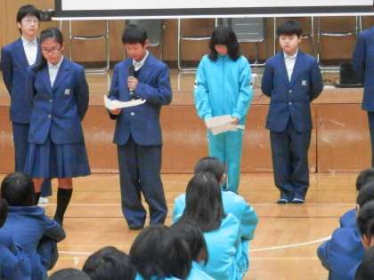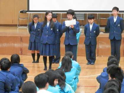 はじめは、各学級の代表者が2ndステージの反省点と3rdステージへの決意を述べました。