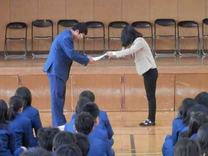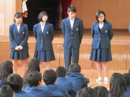 紫野高校の英語スピーチコンテストに出場して本線まで勝ち残った生徒を表彰したのち、学習指導について清原先生から話がありました。