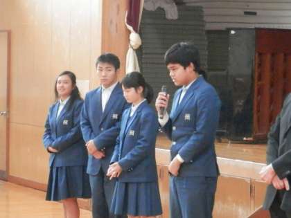 学校長の話の後は、いつもの通り生徒代表からの決意表明です。