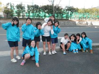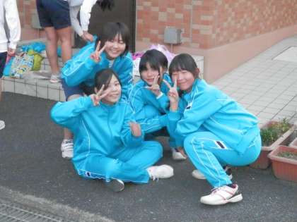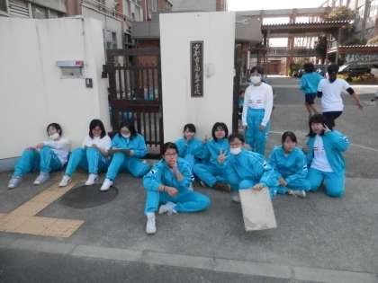 2年女子の体育は長距離走です。ゴールインした人たちの様子です。