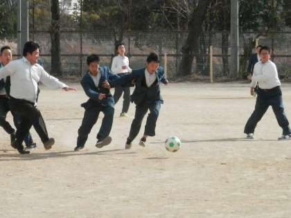 1年の男子が2組対3組でサッカーの試合をしました。