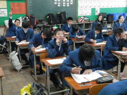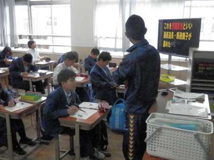 5時間目の授業の様子です。1組は理科、2組は社会です。