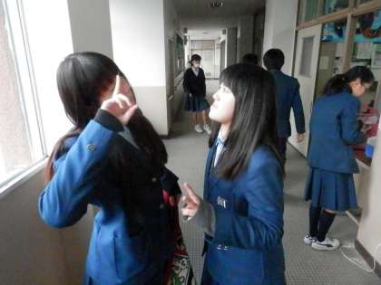 廊下で楽しく休憩時間を過ごします。