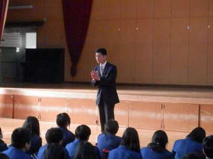 学校長の話に続いて結団宣言がなされ、体育館に拍手が鳴り響きました。