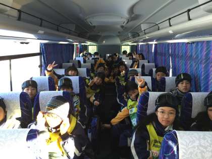 3日目の朝、スキー場に向かう1組のバスの様子です。