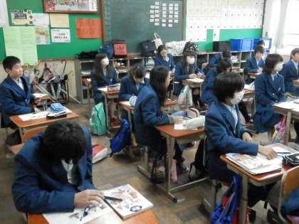 1組は社会の時間です。歴史は鎌倉時代に入ったようです。