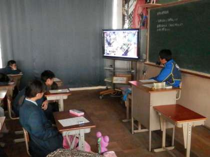 3年生はジャイカが作成したDVDを視聴しています。