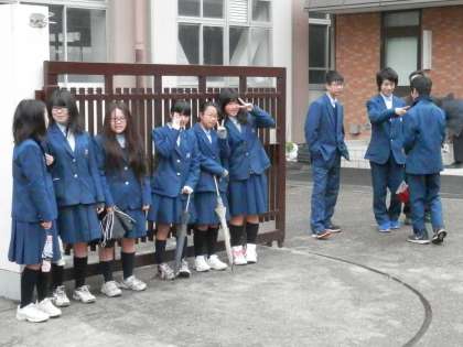 「生徒十訓はっちり週間」ということで、今日も校門は生徒で一杯です。