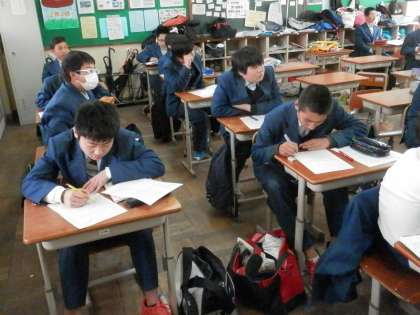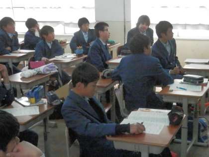 2組の社会と、3・4組は保健体育ですが、男子は教室で保健の学習です。