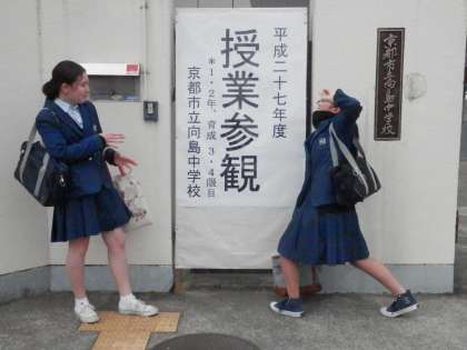 今朝のユイさんのパフォーマンスは、今日3・4時間目の授業参観の宣伝です。