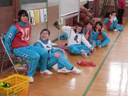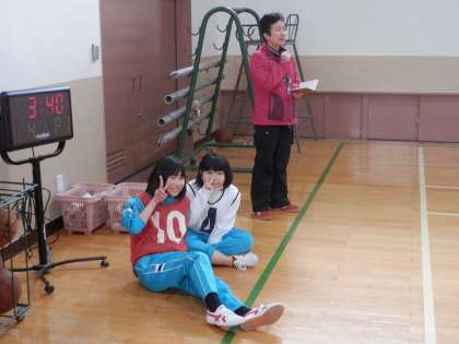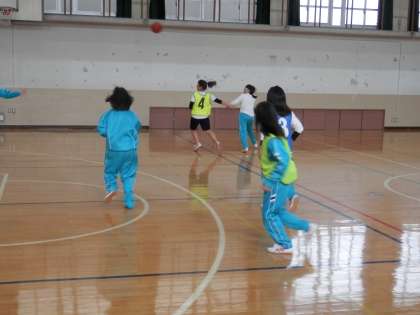 女子は体育館でバスケットボールです。