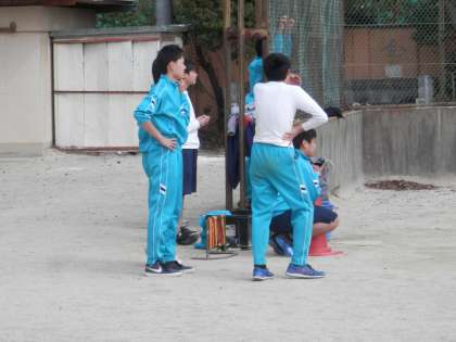 帰ってきたら、まだ3年生がグランドでソフトボールをしていました。授業も残すところわずかなので、生徒のやりたいことをしているようです。