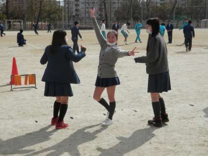 金曜日の昼休み、グランドと中庭の様子です。