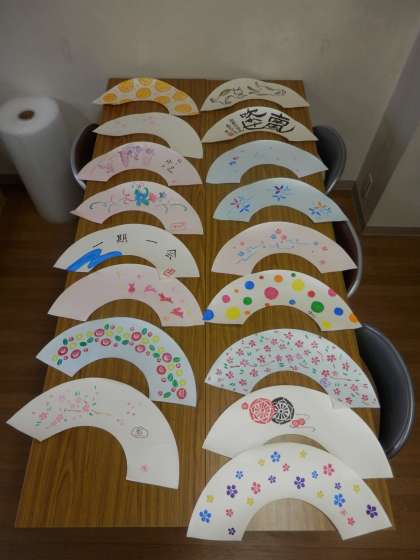 午前中、親まなび委員会の活動の一環で「扇子つくり」を体験してきました。