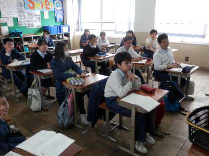 3組は英語。この時間には読みのテストが行われていました。